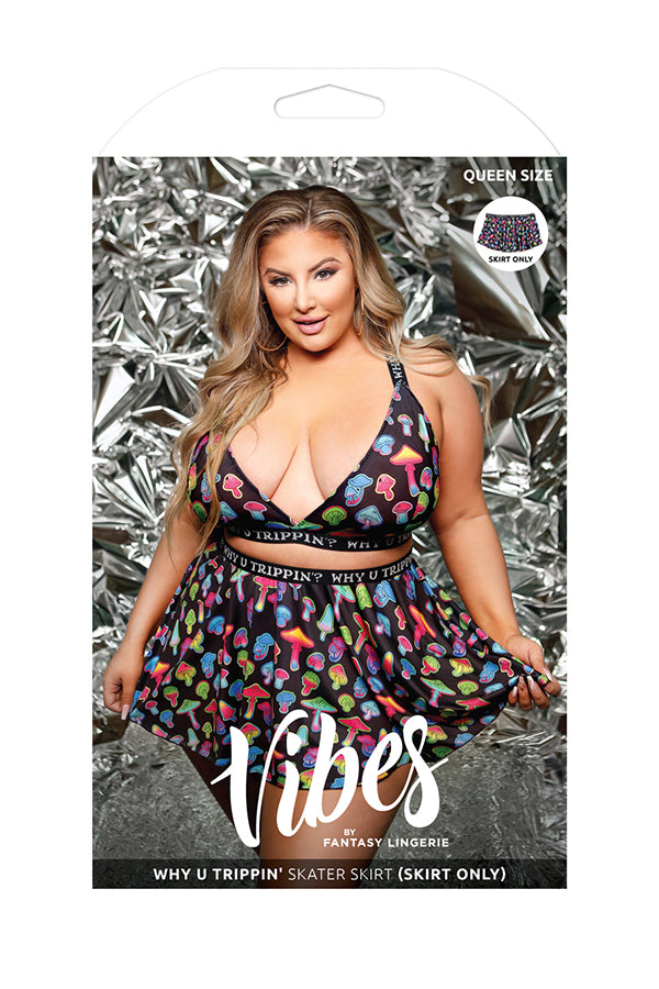 UV Reactive Print Skater Skirt with "Why U Trippin'" Elastic (Skirt Only) ๐